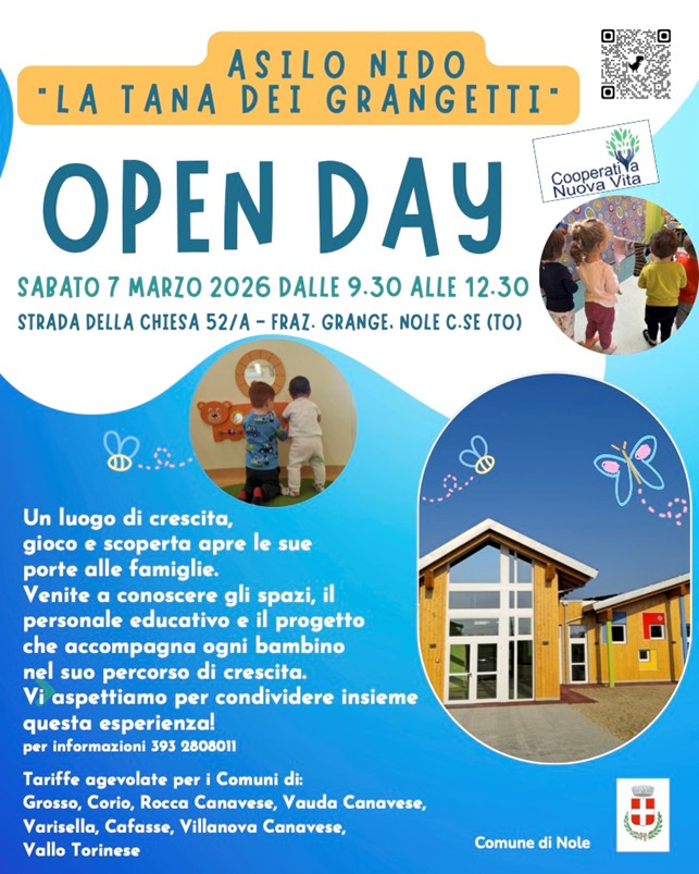 L’asilo nido “La Tana dei Grangetti” apre le porte offrendo l’opportunità di conoscere da vicino spazi, servizi e proposta educativa: un appuntamento pensato per chi sta valutando l’iscrizione per il prossimo anno scolastico e desidera approfondire direttamente l’organizzazione e il progetto del nido.